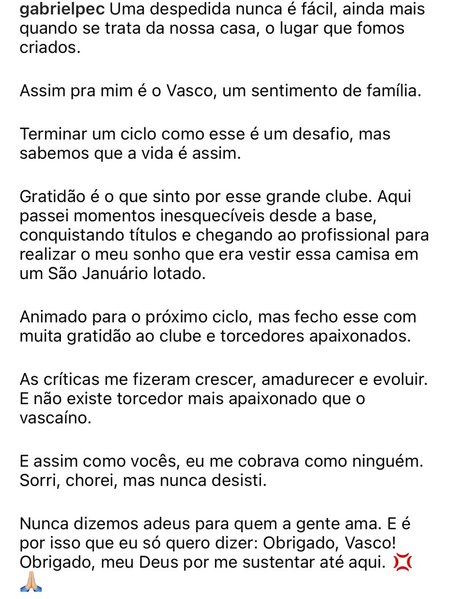 Página inicialNoticias Gabriel Pec posta em seu Instagram: 'Obrigado por tudo, Vasco' PorPortal Vascaíno -janeiro 30, 2024 0 😭😭😭😭😭😭😭😭😭😭Fonte: X NewsColinaNews Almirante @NewsAlmiranteeGabriel Pec se despediu do Vasco em suas redes sociais.Eu não estou chorando, você que está. 🥲Fonte: X News Almirante Tags Noticias Facebook Twitter