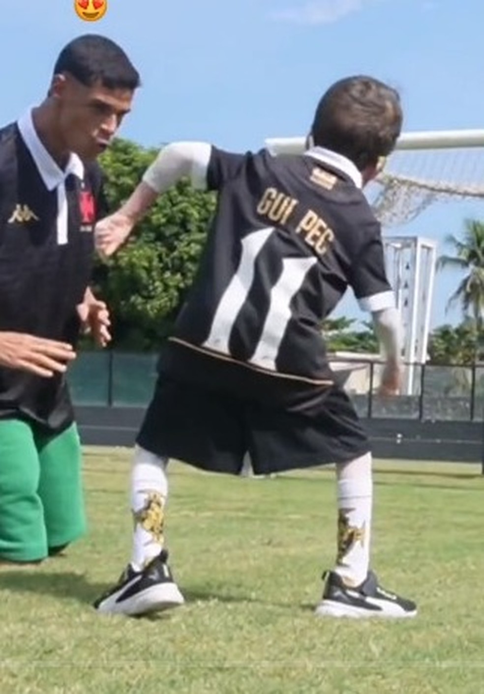 Gui conhece Luva de Pedreiro em São Januário e faz chamada com filho de Cristiano Ronaldo