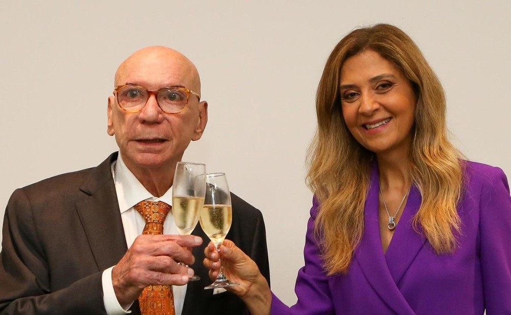 Jose Roberto Lamacchia e Leila Pereira, presidente do Palmeiras — Foto: Cesar Greco/Palmeiras