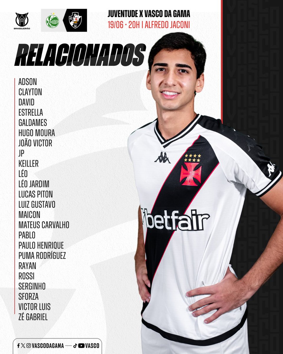 📋 Os relacionados do Vasco para enfrentar o Juventude ✈️