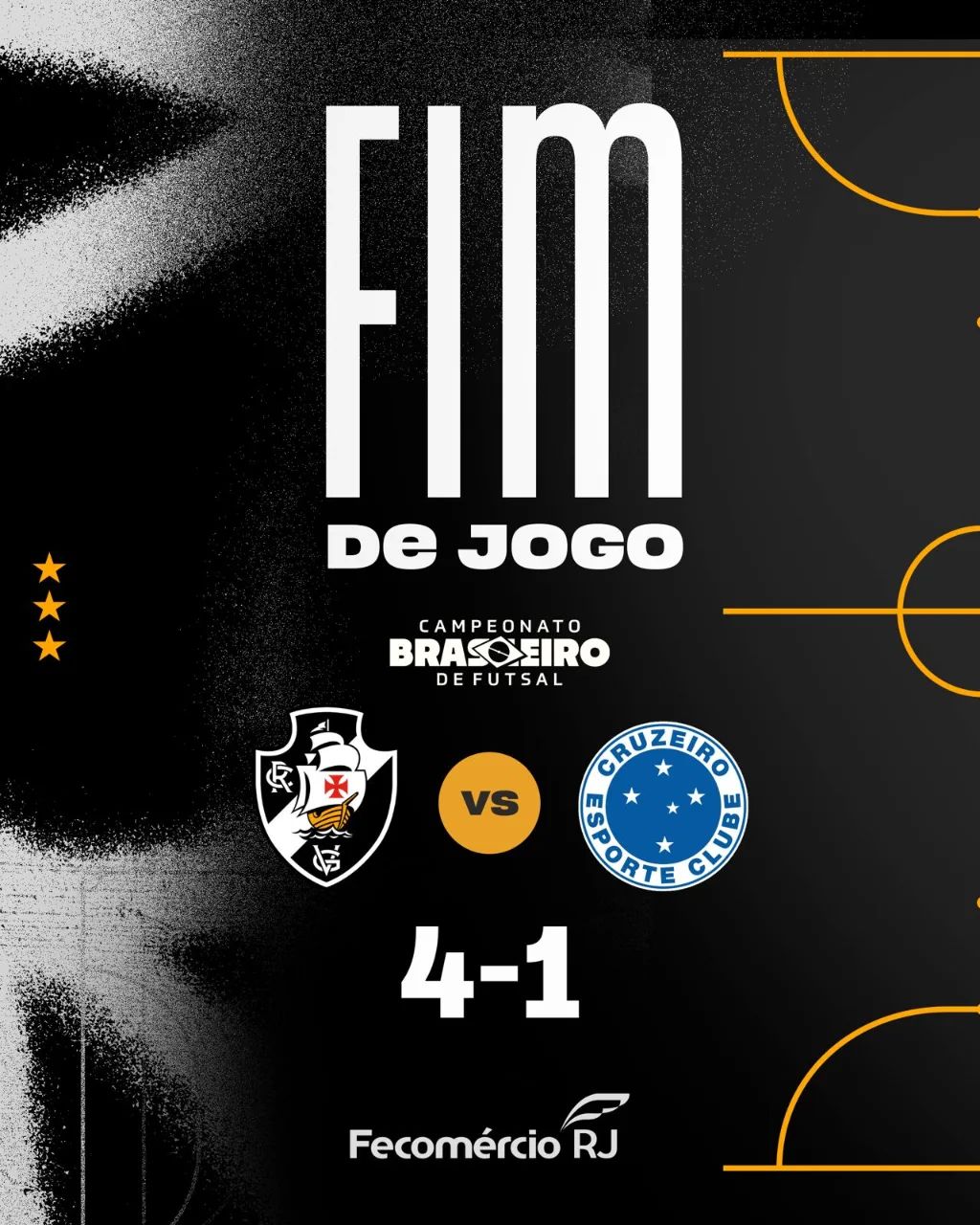 O Vasco goleou o Cruzeiro por 4 a 1 na manhã deste sábado por 4 a 1 no ginásio Pedrão, em Teresópolis, pelo Campeonato Brasileiro de Futsal.