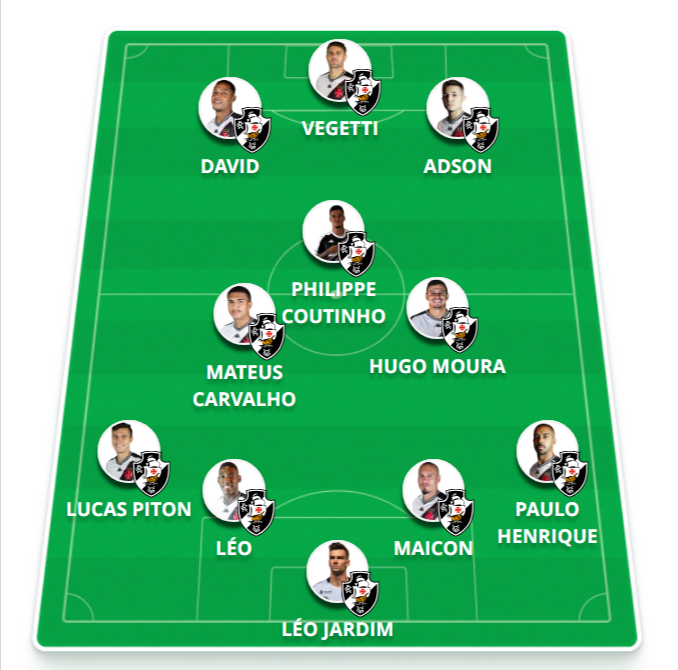 O Vasco terá a volta de Adson ao time titular. O ponta-direita foi preservado na partida contra o Grêmio e começará jogando contra o Atlético-GO. Coutinho deve ser titular novamente, e Payet seguirá no banco de reservas.