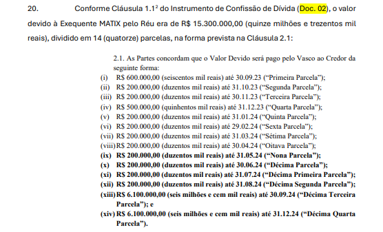 A Matix Capital cobra do Vasco SAF a quantia de R$ 15.300.000,00.