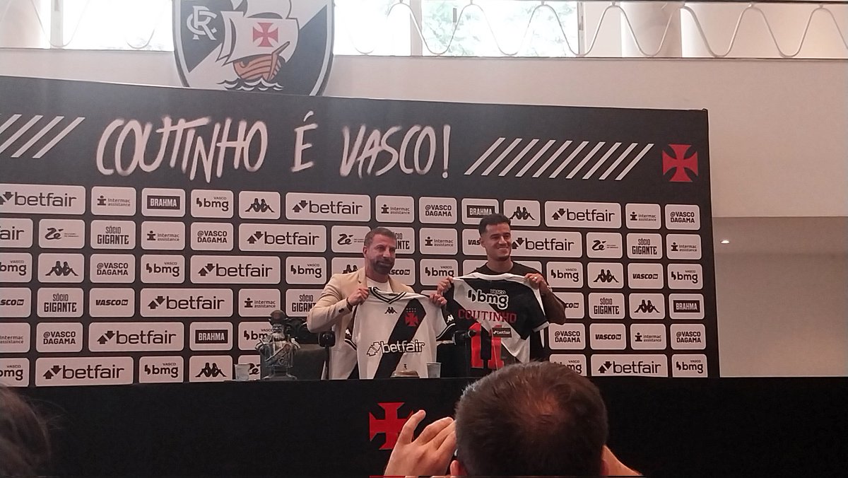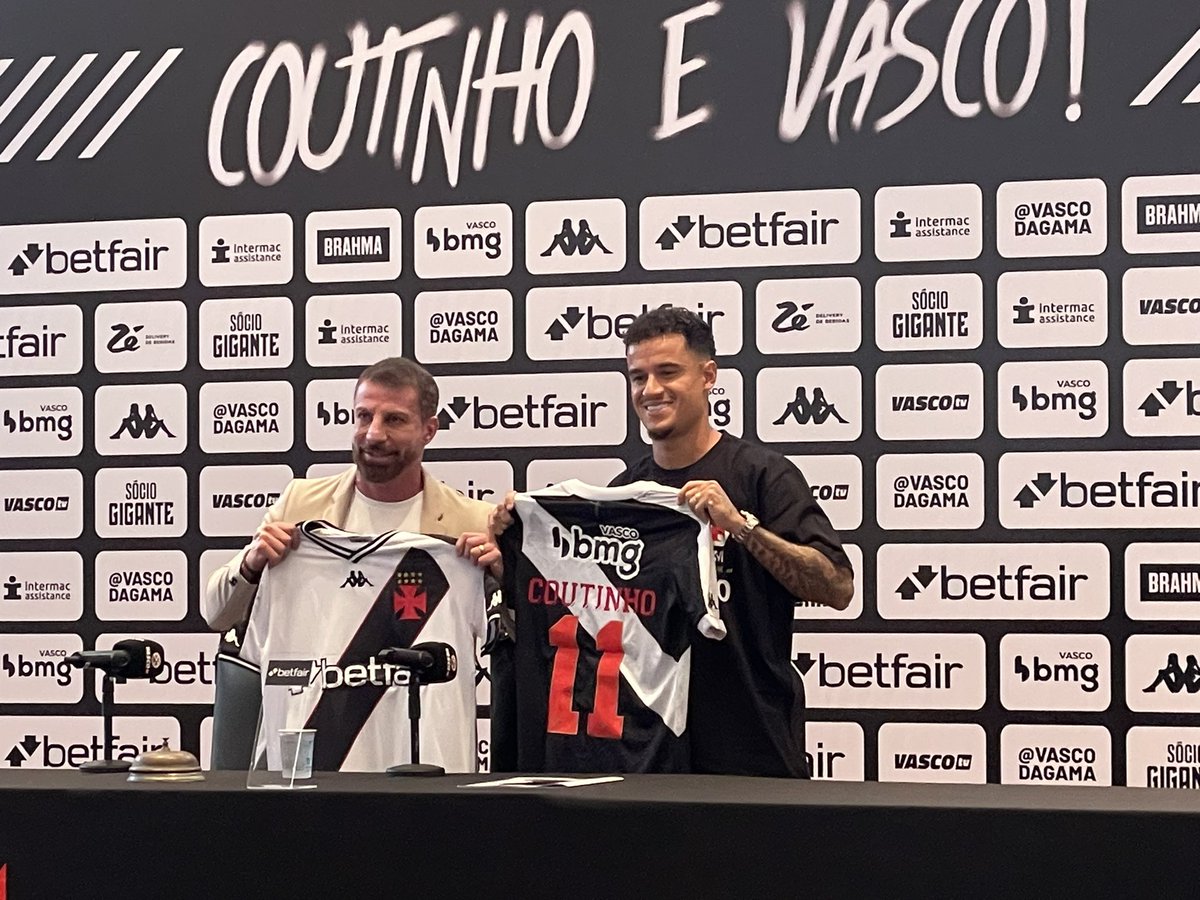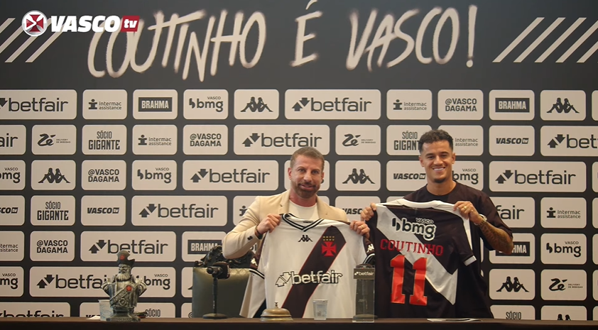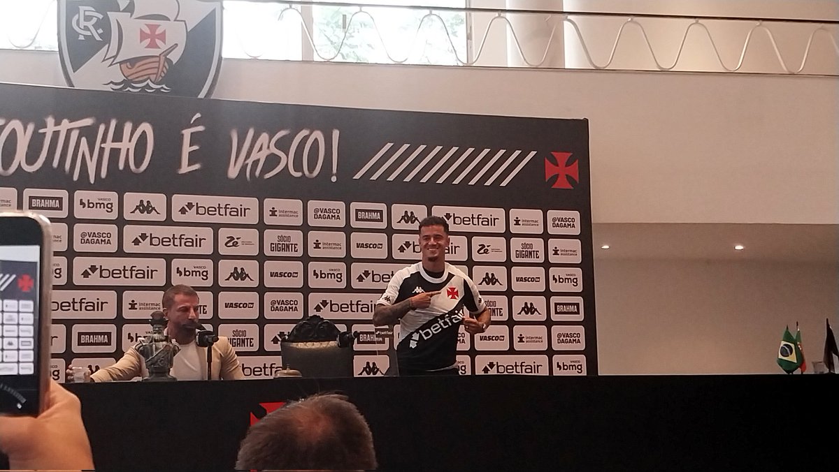 Coutinho oficialmente apresentado como novo reforço do Vasco. Momento histórico.
